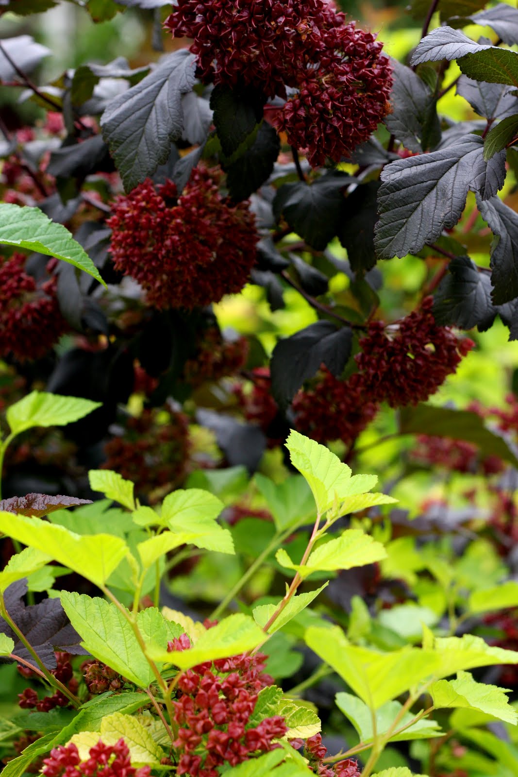 Okay, I came across these Ninebark shrubs on a walk the other day. These deciduous shrubs grow between 1-3 meters and they make excellent specimen shrubs in a back border. Physocarpus is the genus and the dark foliaged shrub is the cultivar 'Diablo' and the citrus green one is 'Dart's Gold'. Love, love, love these this year! They like full sun to partial shade and well drained average soil.